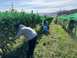 ピノ・ノワール収穫 2025年10月3日 秋晴れの元、ピノ・ノワールの収穫を行いました。 昨年は10kgほどしか収穫できませんでしたが、今年はうまくいくと100kgくらいはいきそうです。これからワインにするのが楽しみです。 また、この圃場は、西山斜面にあり、松本 Read More »