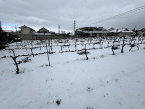 昨夜から降った雪もだいぶ解けましたが、ワイナリーの西側にあるお山は真っ白です。
