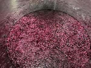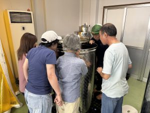 2週間前に収穫したワイナリー前のメルローの発酵具合をみてもらい、どんなふうにしてワインが出来上がるのかを説明しました。