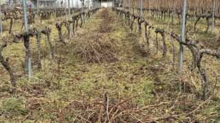 ワイナリー便り 剪定作業は続く 今日は寒かった。マイナス2度くらいの中、シャルドネの剪定作業が続いています。ハサミは電動なので、大きな枝も容易に切れるのですが、切った枝が針金に絡まってるので外すのが大変です。 2025.02.05 ワイナリー便り