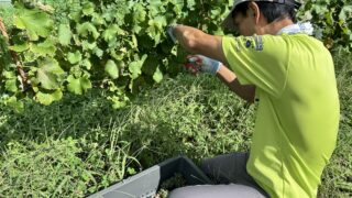 ワイナリー便り 9月23日 ソーヴィニヨン・ブラン収穫 テスト圃場にあるソーヴィニヨン・ブランの収穫を行いました。テスト圃場は標高約720m、他の圃場より高い位置にあります。山際で風通しも良いことから、きれいな実が多く収穫できました。 2024.09.23 ワイナリー便り