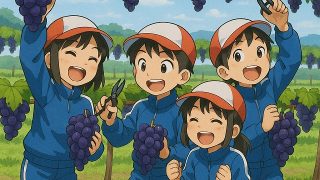 ワイナリー便り 小学生の収穫体験 山形小学校の4年生の児童のみなさんが収穫体験にやってきました。先生に先導され、1列縦隊で畑まで。近づいてくるのがわいわいの声でわかります。小4というとまだ10才、ハサミも上手く使えるか心配でしたが、全然大丈夫。収穫の手順を教えてあげるとみん... 2025.10.08 ワイナリー便り